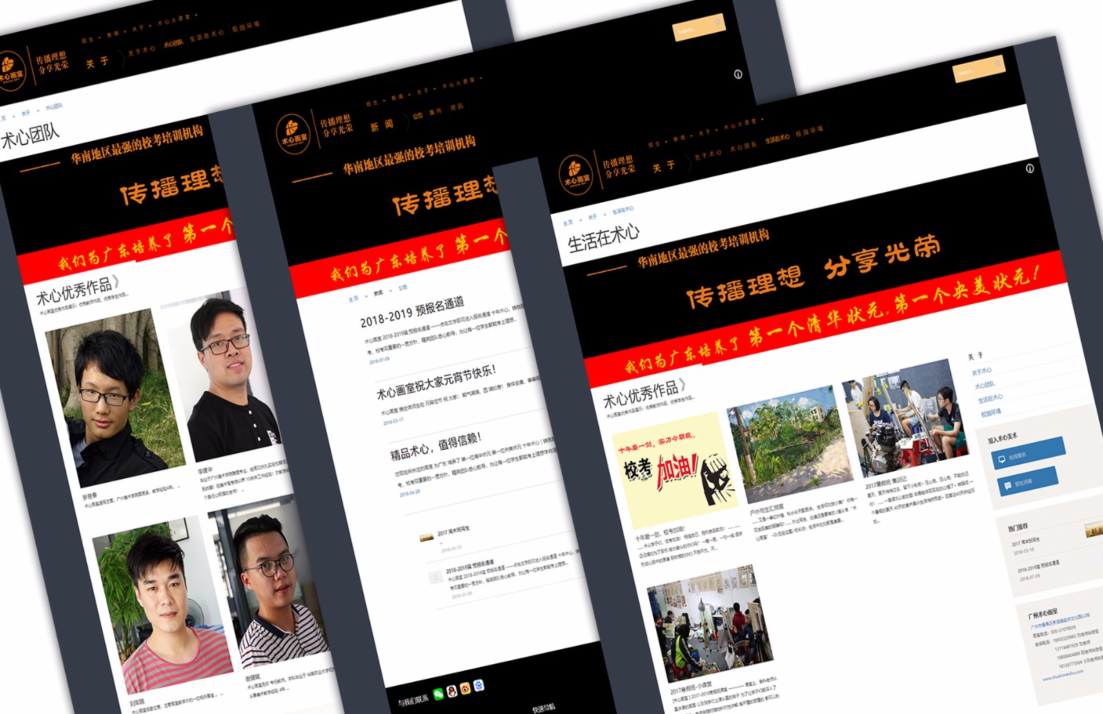 術心畫室坐落于環境優美的廣州“起點文化園”內,這里是全國同行業最完善的藝考培訓園區。毗鄰暨南大學南校區,景色優美,空氣清新,給美術學習提供了良好的學習環境和繪畫靈感。校內有食堂、宿舍、畫材店、超市、運動場,干凈衛生、方便齊備,讓大家有更多的時間投入到學習中,園內封閉式管理讓學生學習更加安全和專注。