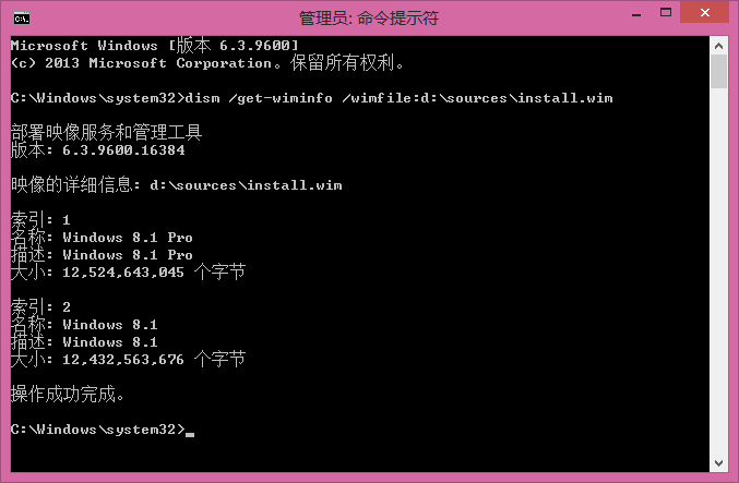 可以查詢D:\sources\install.wim中包含的系統映像以及各自的索引號。