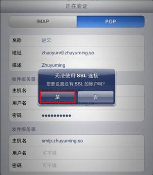 第四步:點擊“存儲”后,系統將進行驗證。系統會提示建立沒有ssl鏈接的帳號,請選擇”是”。