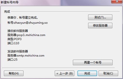 第四步: 賬號建立完成,可以進行郵件的測試。點擊“完成”后即可開始使用郵箱!